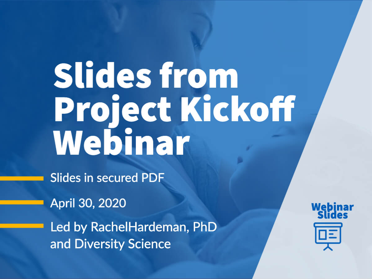 More than 250 participants joined us on April 30, 2020 for the project kickoff webinar. During this one hour webinar, Rachel Hardeman, PhD, MPH, and Diversity Science project team share valuable information about the Eliminating Inequities in Perinatal Health Care project.