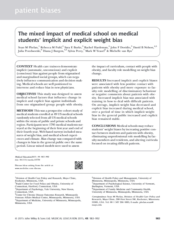 Context Health care trainees demonstrate implicit (automatic, unconscious) and explicit (conscious) bias against people from stigmatised and marginalised social groups, which can negatively influence communication and decision making. Medical schools…